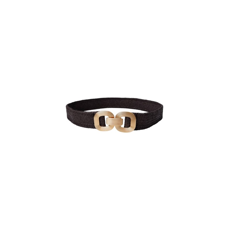 Elastik bælte fra Black Colour i jute i en flot mørkebrun farve med et metalspænde i guld.