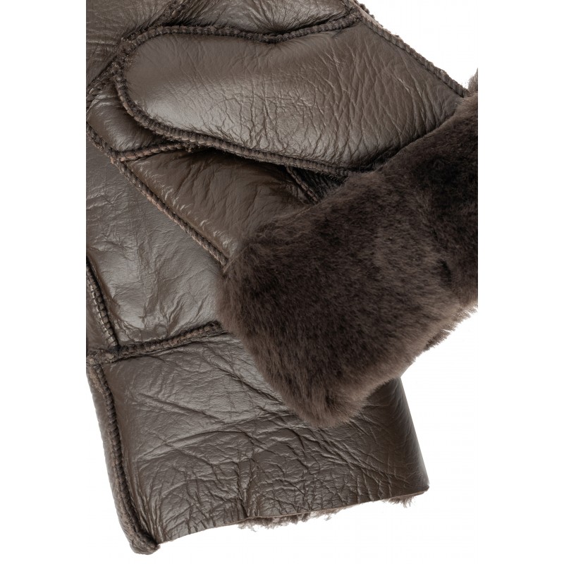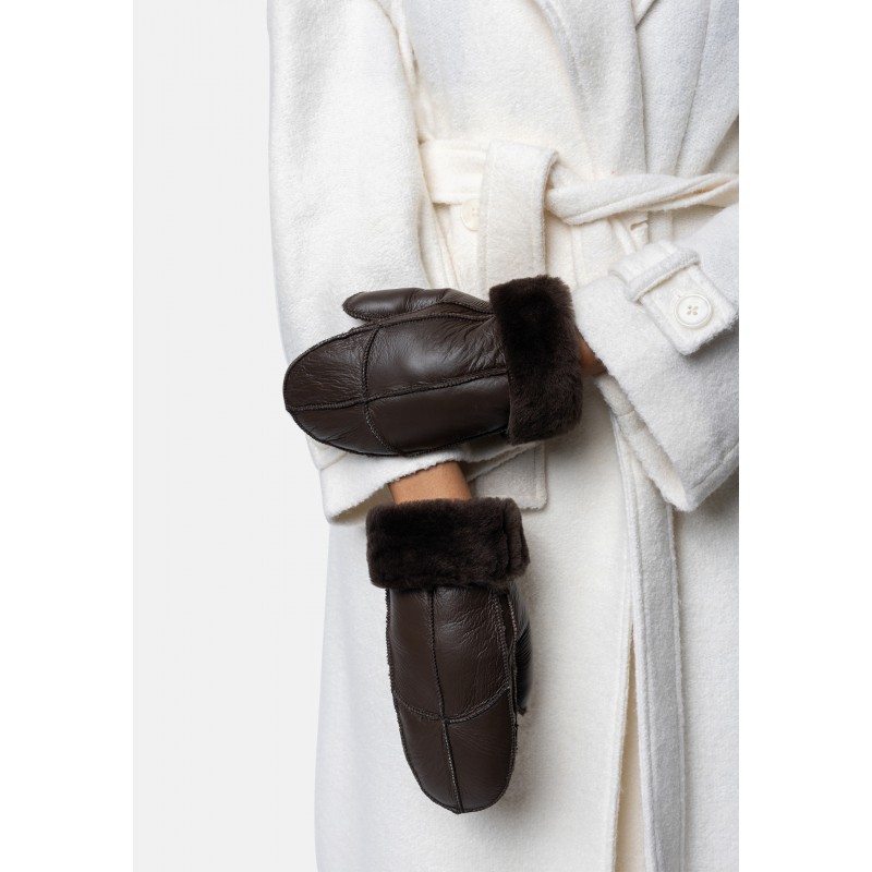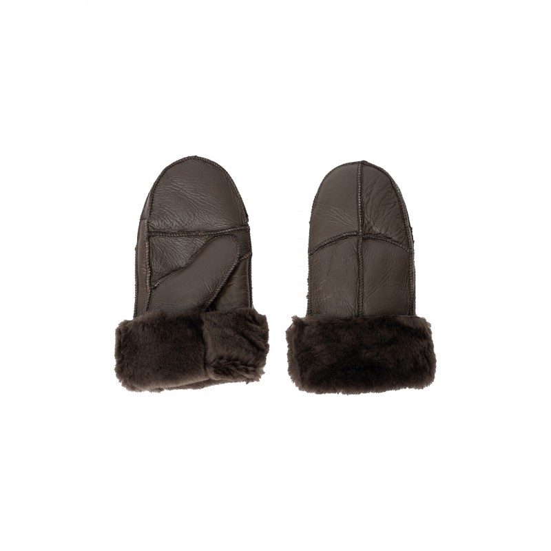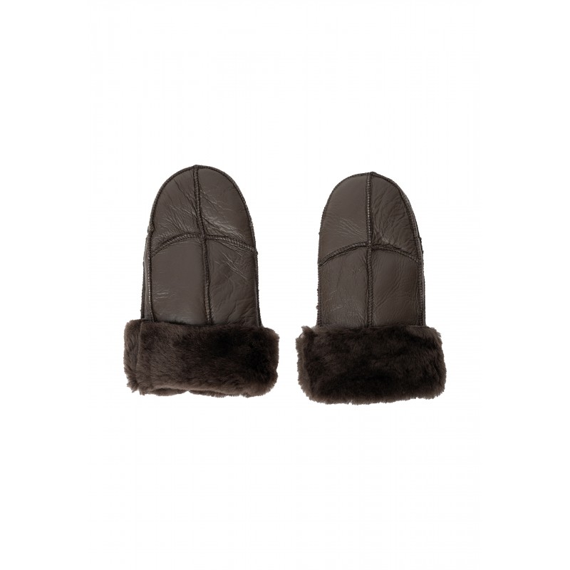 Tidløs og varm skindluffe med lynlige syninger. Handskerne er designet i det blødeste shearling-læder. Shearling er skindet af et nyklippet får eller lam, der er blevet garvet og behandlet, men ulden sidder stadig fast.