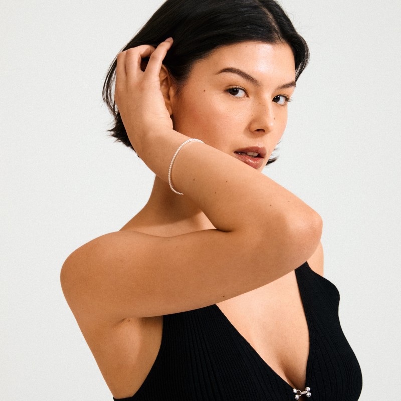 ARASH-armbånd fra Pilgrim. Det slanke design med perlemorsfarvede glasperler, gør armbåndet perfekt til en stacked vibe, hvor du skruer op for stilen og kombinerer med flere af dine armbånd. Med holdbart lycra-elastik får du en comfy pasform, der sidder spot-on. Style armbåndet med en cool blazer og hoops.