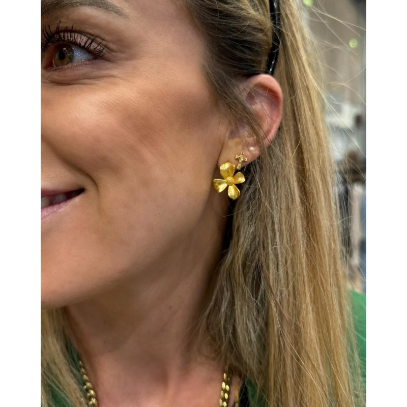 Disse øreringe har en karakteristisk blomsterform med fire blade i anemone-design. Den glatte overflade fanger lyset smukt, og designet gør dem velegnede til både hverdag og fest.