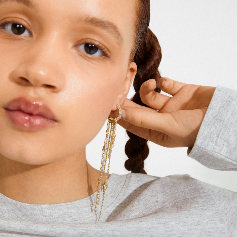 Dripping in dreamy details! De guldbelagte DRUE-øreringe fra Pilgrim er det ultimative go-to, når du vil tilføre dit look et hint af effortless luxury. De små hoops med Preciosa-krystaller smelter sammen med en kaskade af kæder og fine vedhæng, der skaber et legende, free-minded udtryk med en breezy feel. Perfekte til dage, hvor du vil omfavne din indre boho goddess og lade detaljerne tale. Fremstillet af 77% genanvendt materiale – fashion with care!