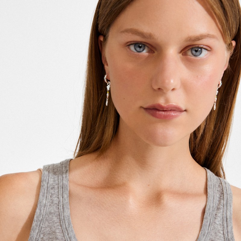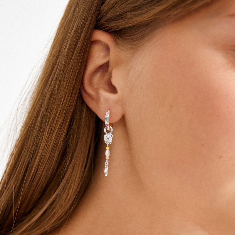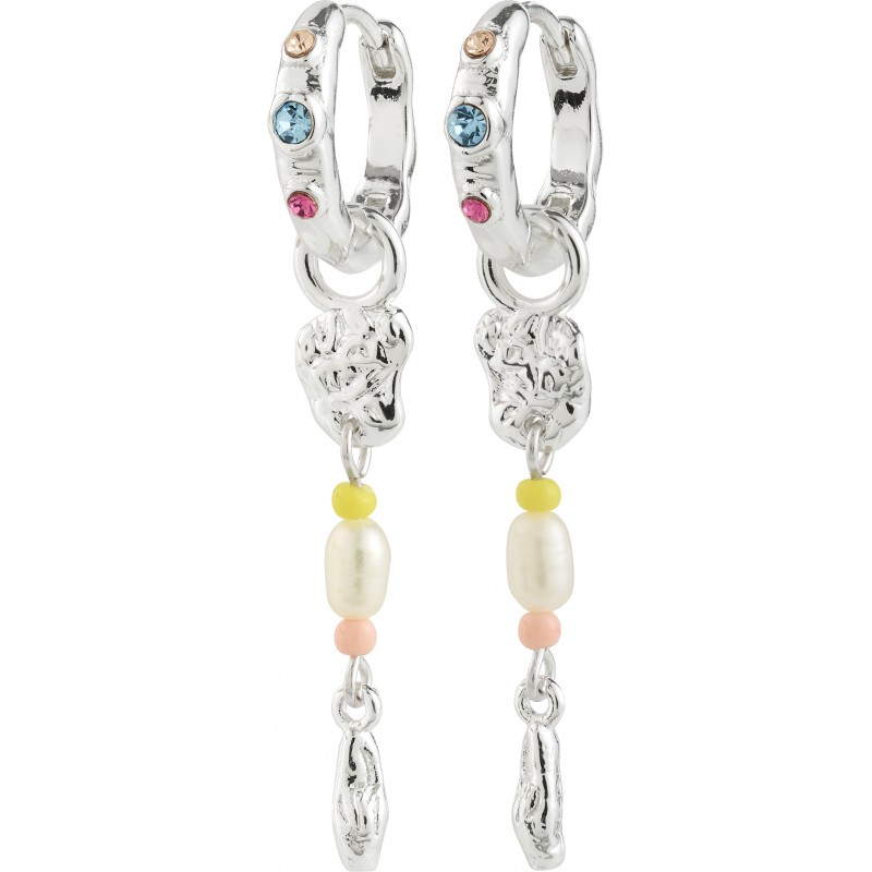 De sølvbelagte ELLINGTON øreringe fra Pilgrim er fyldt med sanselig tekstur, farvede perler og romantisk energi. De små hoops har pastelfarvede krystaller og aftagelige vedhæng med sølvbelagte detaljer og perler i farverne blå, pink og perlemor.