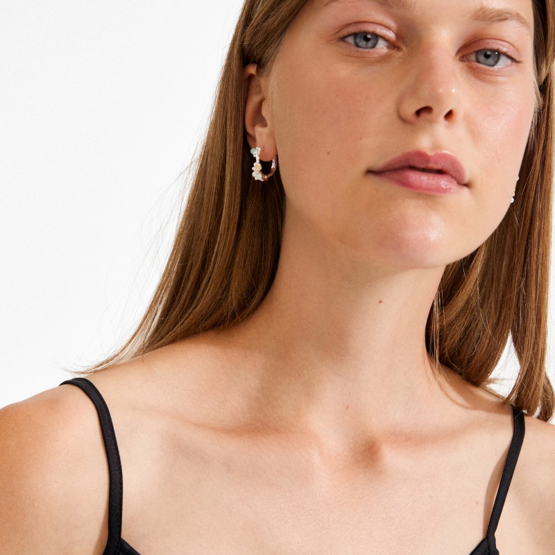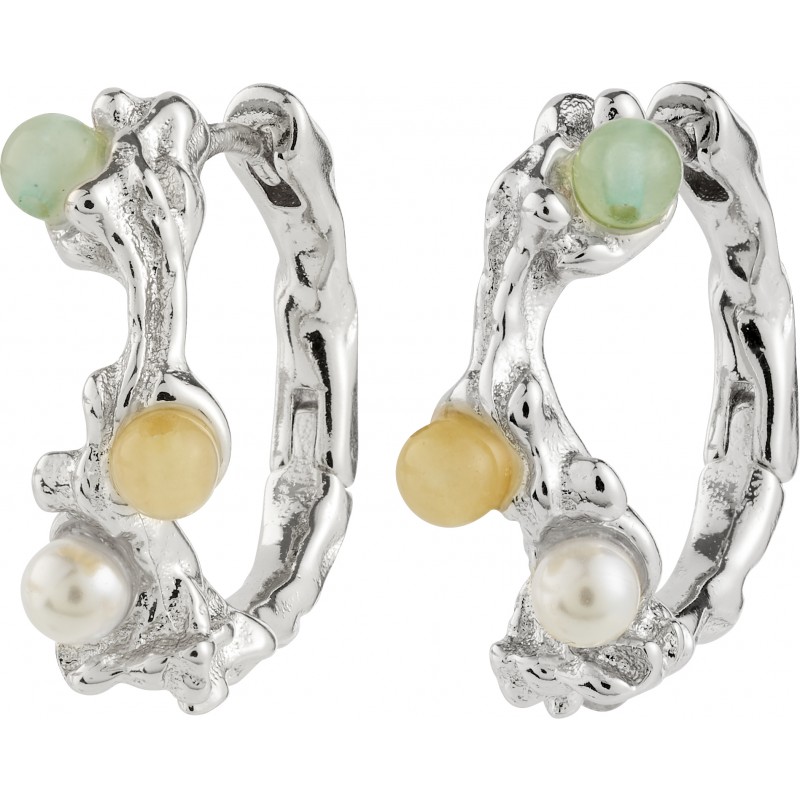 De sølvbelagte IRIS hoops fra Pilgrim er som små fortællinger i smykkeform – med et poetisk, organisk formsprog, der leder tankerne hen på krogede kviste og krusninger i et stille vandløb. De små perler i mint, champagne og perlemor tilføjer et strejf af naturens farver og giver en sanselig dybde til det finurlige, teksturerede look. En let kliklås gør dem nemme at style til både hverdagsro og special occasions.