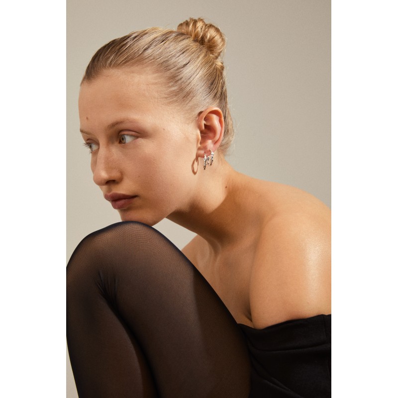 - Sølvbelagte hoops med shiny overflade og organiske shapes