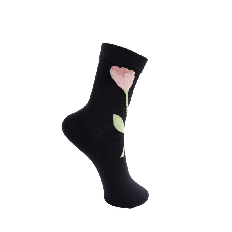Black Colour BCFRANCHIE FLOWER SOCK - Sort strømpe med blomster 4337 Black