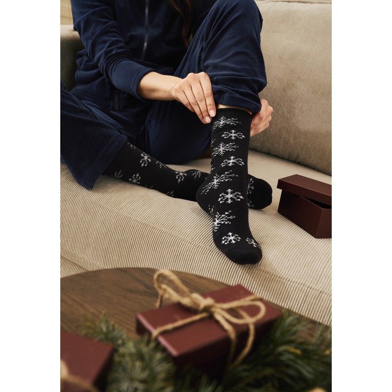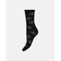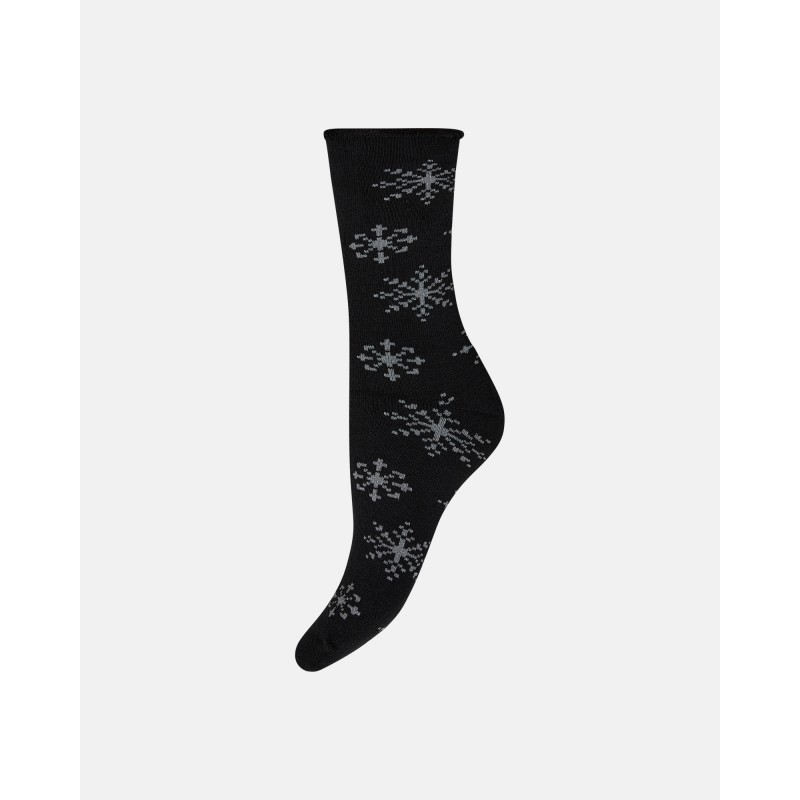 Decoy Cosy X-MAS socks - Sort strømpe med sølv isblomster 9-21510-75
