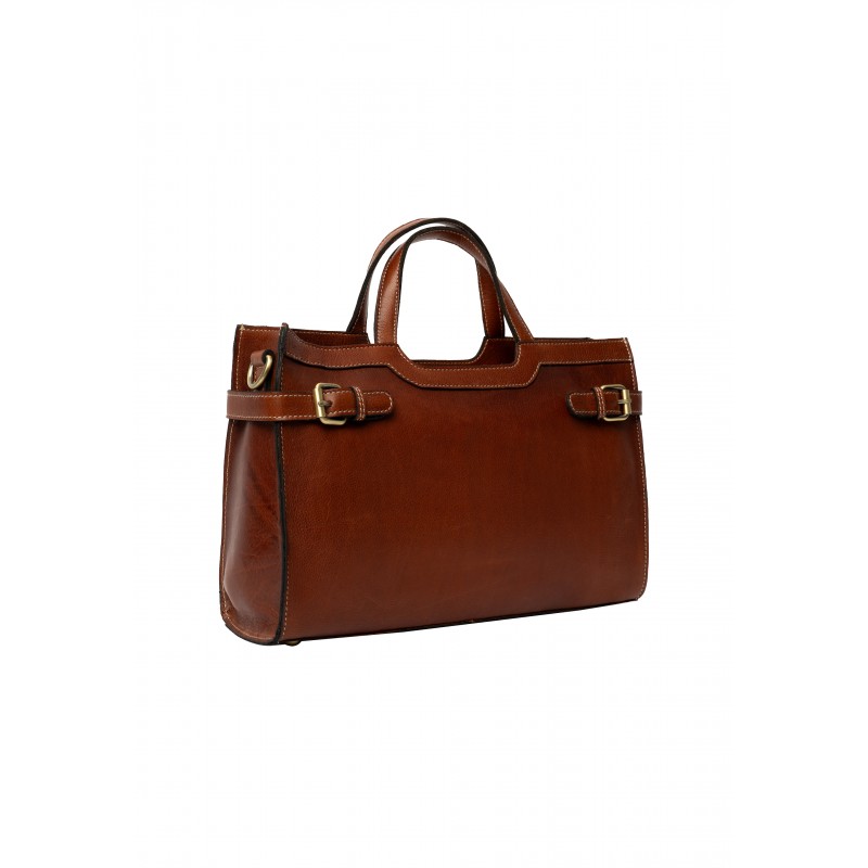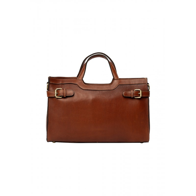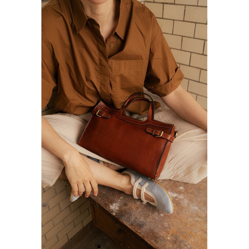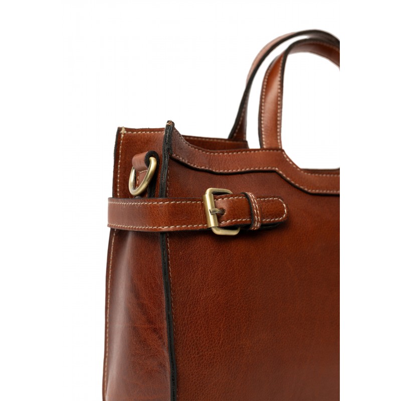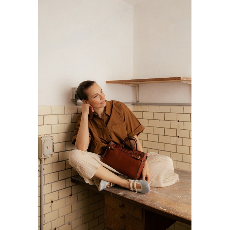 Stilren og smuk skindtaske fra RE:DESIGNED med et elegant look. May tasken har bære hank og en medfølgende skulderem, som kan sættes på tasken, hvis den skal bære som crossover. Den har flotte spænder på siden og lukkes med en lynlås på toppen.