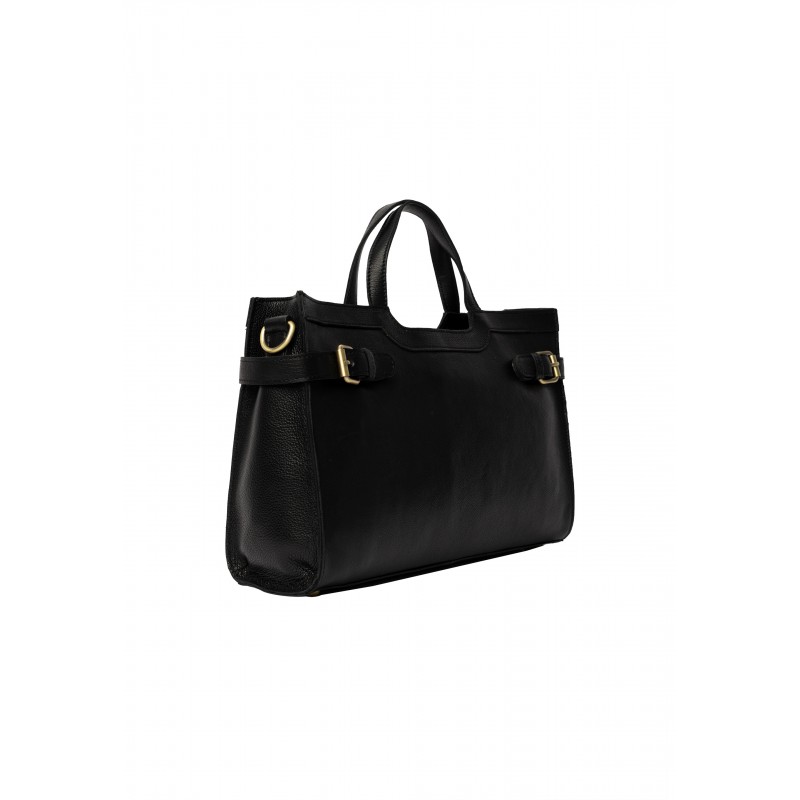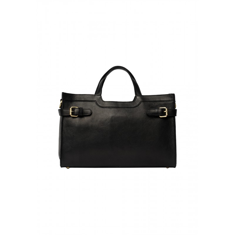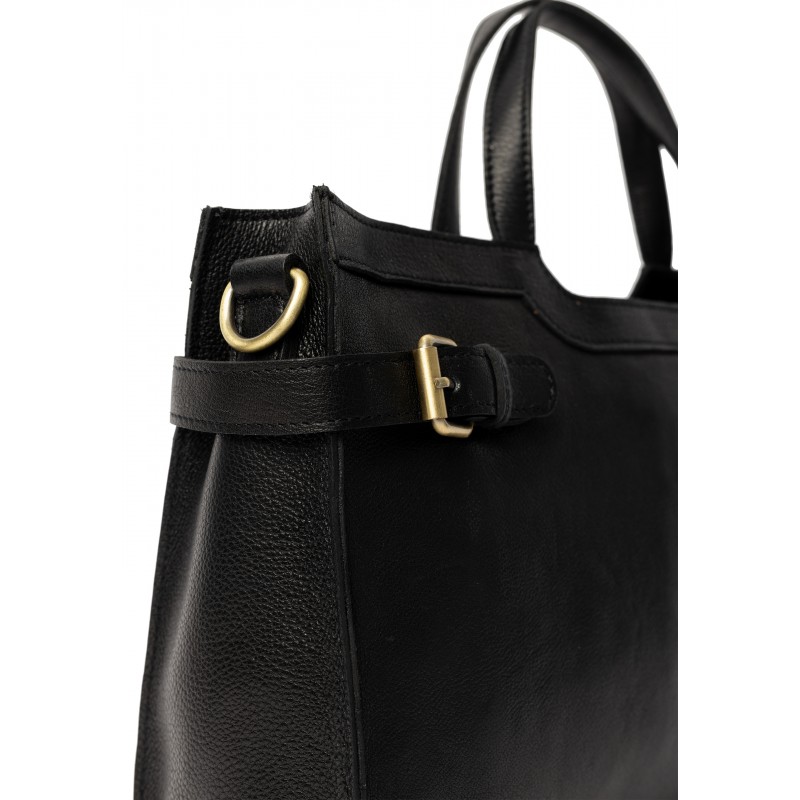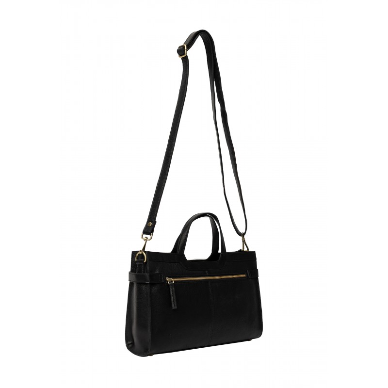 Stilren og smuk skindtaske fra RE:DESIGNED med et elegant look. May tasken har bære hank og en medfølgende skulderem, som kan sættes på tasken, hvis den skal bære som crossover. Den har flotte spænder på siden og lukkes med en lynlås på toppen.