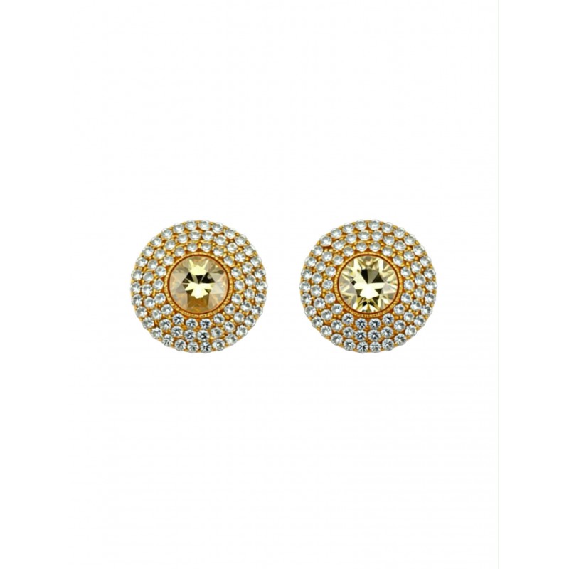 Flot cover i guld med krystalsten i midten og små sten rundt om. Perfekt til at shine knapper på skjorten op. Sælges som sæt med to styk.
