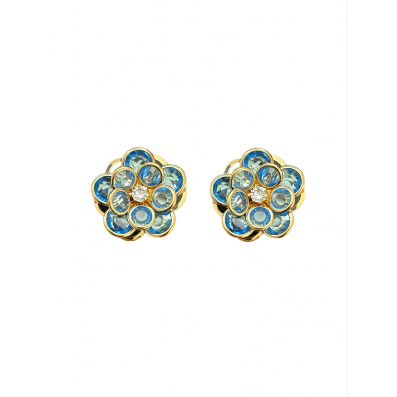 Flot blomster cover i guld med blå sten. Perfekt til at shine knapper på skjorten op. Sælges som sæt med to styk.