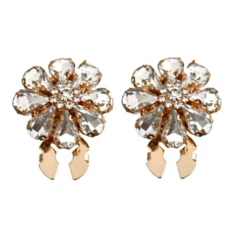 Flot blomster cover i guld med hvide sten. Perfekt til at shine knapper på skjorten op. Sælges som sæt med to styk.