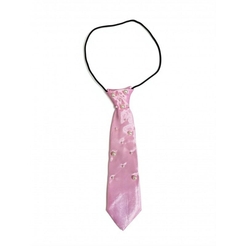 Smart pink slips med påsyede perler. Slipset har en elastik strop om halsen.