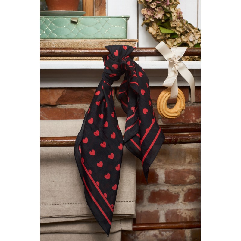 Black Colour BCCLAUDIA LOVE MINI SCARVES - Sort tørklæde med røde hjerter 3618 Black fra Black Colour