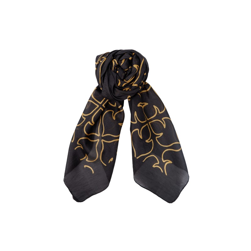 Silke tørklæde fra Black Colour i sort med et flot print.