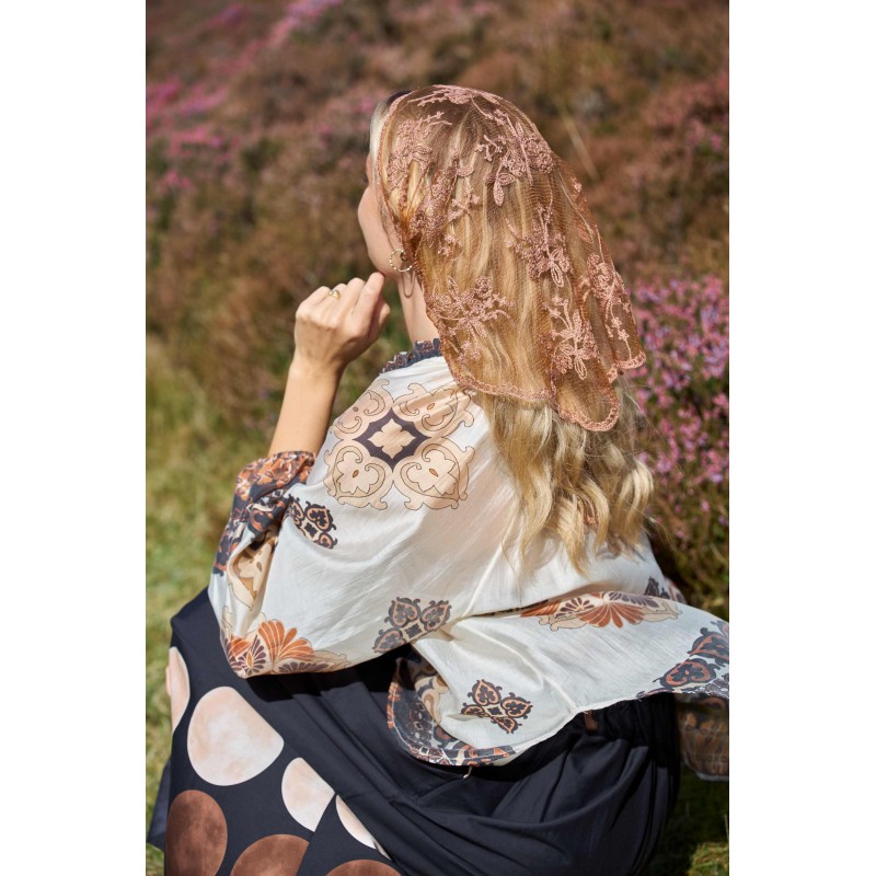 BCMIRIANA tørklædet er et elegant tørklæde i trekantsform med gennemsigtige blonder, der sikrer et feminint look. Brug det som skørt eller i håret for et iøjnefaldende og unikt look.