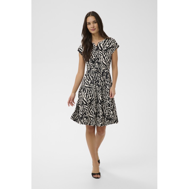 Kaffe KAbella Jersey Dress - Sort printet grafisk kjole 10508466 Black Deep/Chalk s animal fra Kaffe