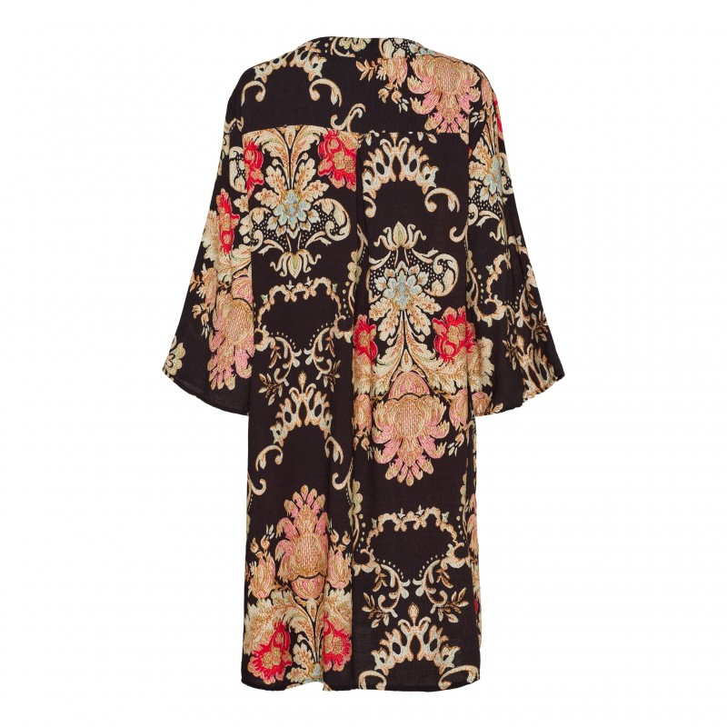 MdcMallow er en smuk printet kjole med v-udskæring og 3/4 lange ærmer.