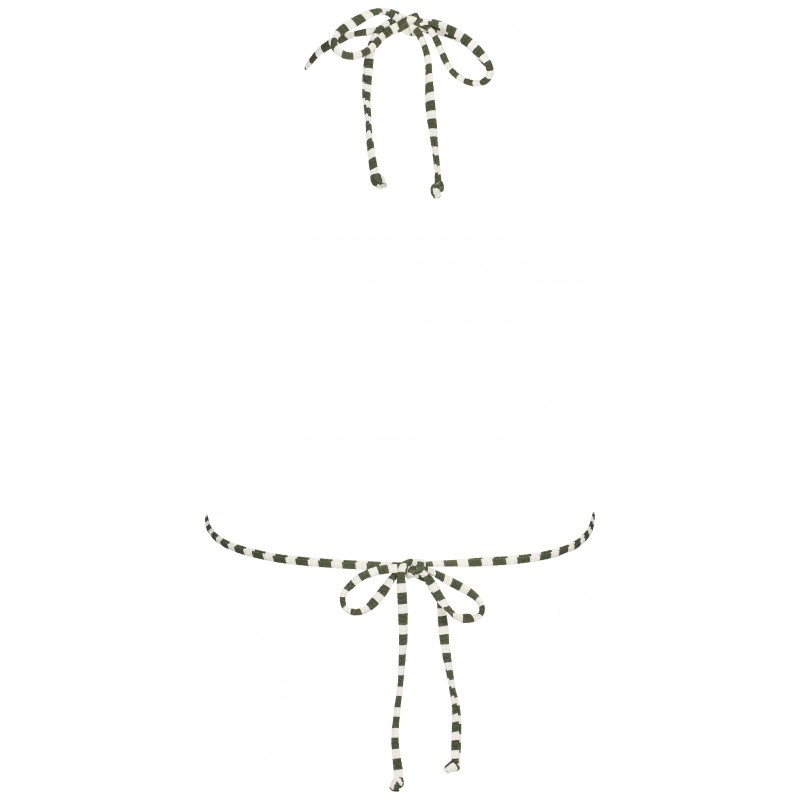 Flot grønstribet bikinitop, som bliver bundet i nakken og på ryggen. Denne trekantbikini top er i en let wafflet kvalitet, der gør den har lidt struktur i stoffet. Toppen har udtagelige indlæg.