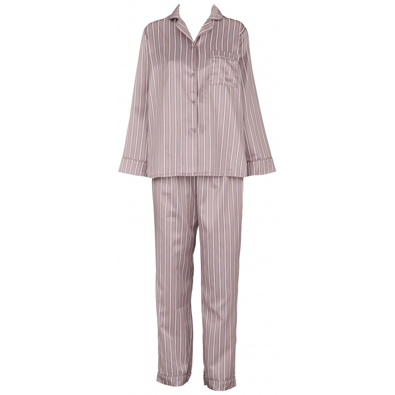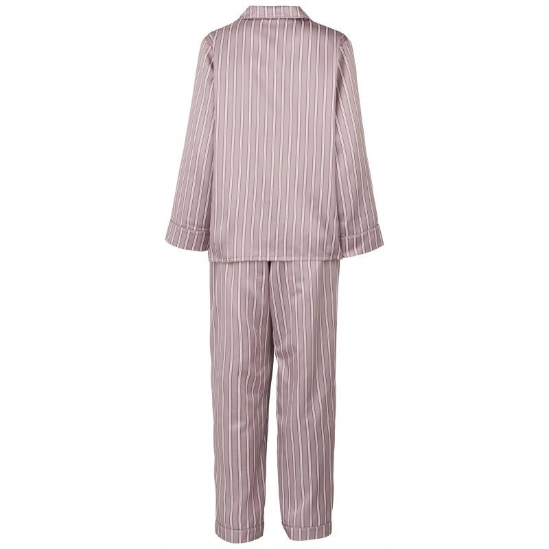 Luksuriøs pyjamas med delikate detaljer i den smukkeste gammel rosa, fremstillet i en tykkere silkeagtig og vævet stofkvalitet. Skjorten er designet med knapper og en lille brystlomme. Bukserne har lige ben og elastikkant foroven, samt bindebånd