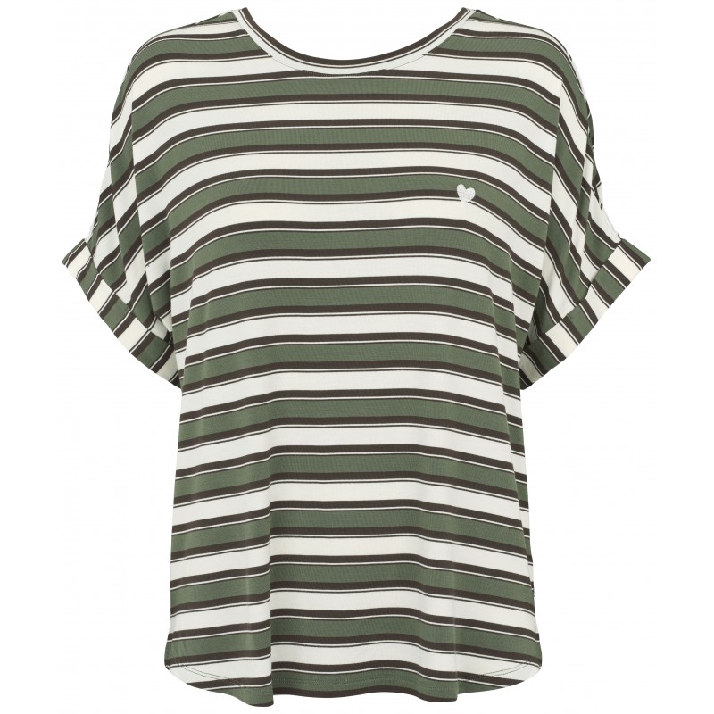 Missya Softness Stripe T-shirt - Grøn stribet natbluse 13348 Dusty Green