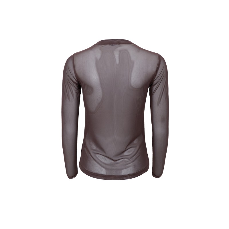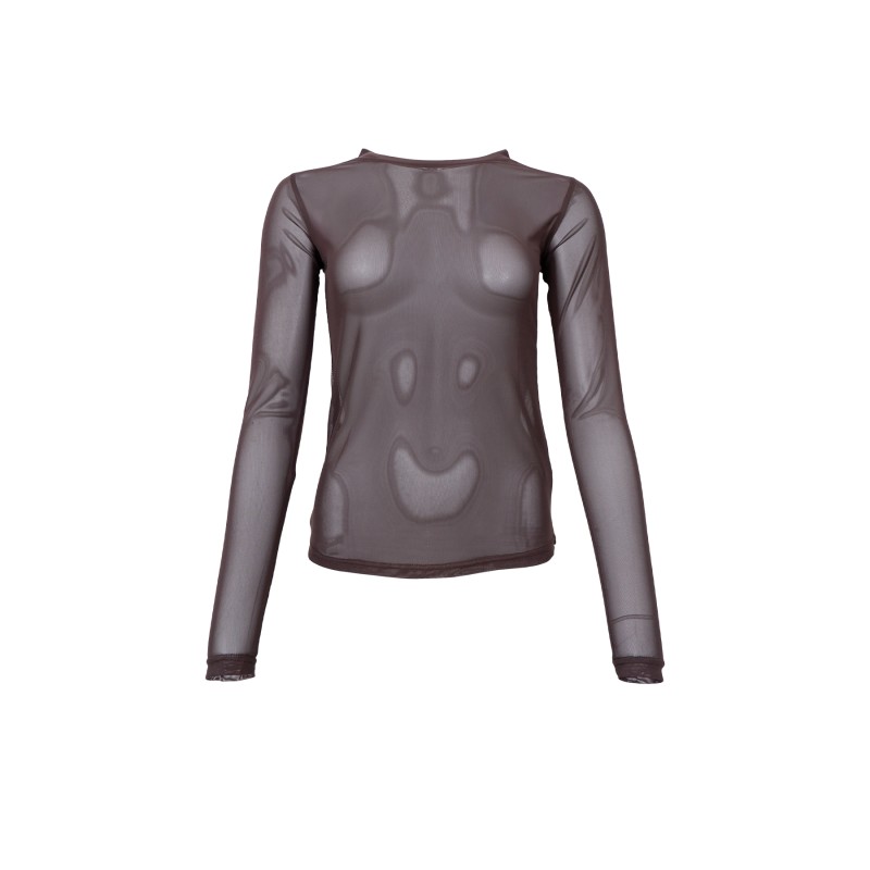Lang ærmet mesh bluse med rund hals fra Black Colour. Blusen er ensfarvet brun.