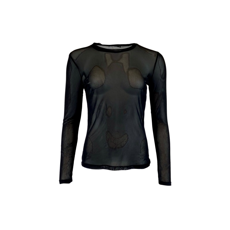 Lang ærmet mesh bluse med rund hals fra Black Colour. Blusen er ensfarvet sorte.