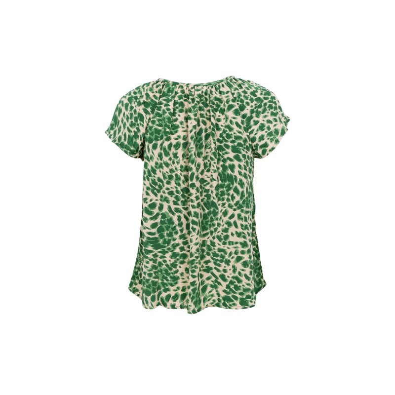 Fineste bluse i et grønt leopard print. Blusen har rund hals med et bindebånd i halsen.