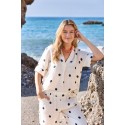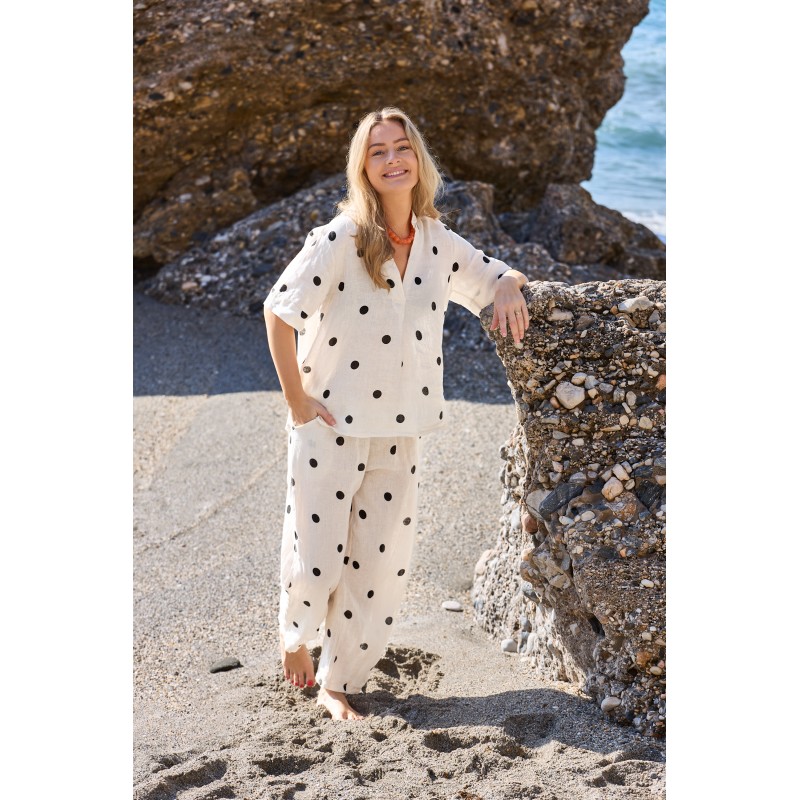 Black Colour BCMELINA SS LINEN BLOUSE - Hvid prikket hørbluse 40842 Dot fra Black Colour