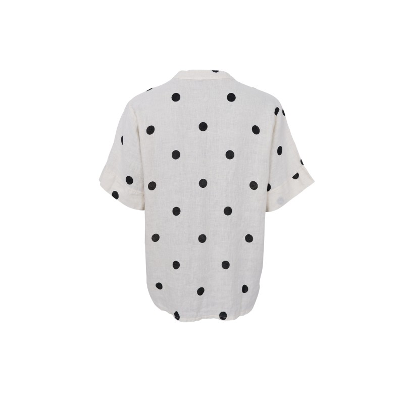 Black Colour BCMELINA SS LINEN BLOUSE - Hvid prikket hørbluse 40842 Dot