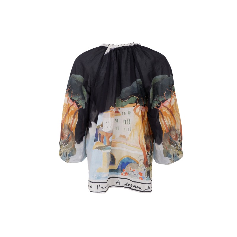 Fantastisk bluse fra Black Colour med et super smukt Riviera print på. BCRIVIERA blusen er lavet i let bomulds kvalitet og er i onesize. Blusen har v-hals, vidde i ærmerne og en skøn løs pasform.
