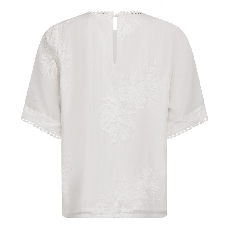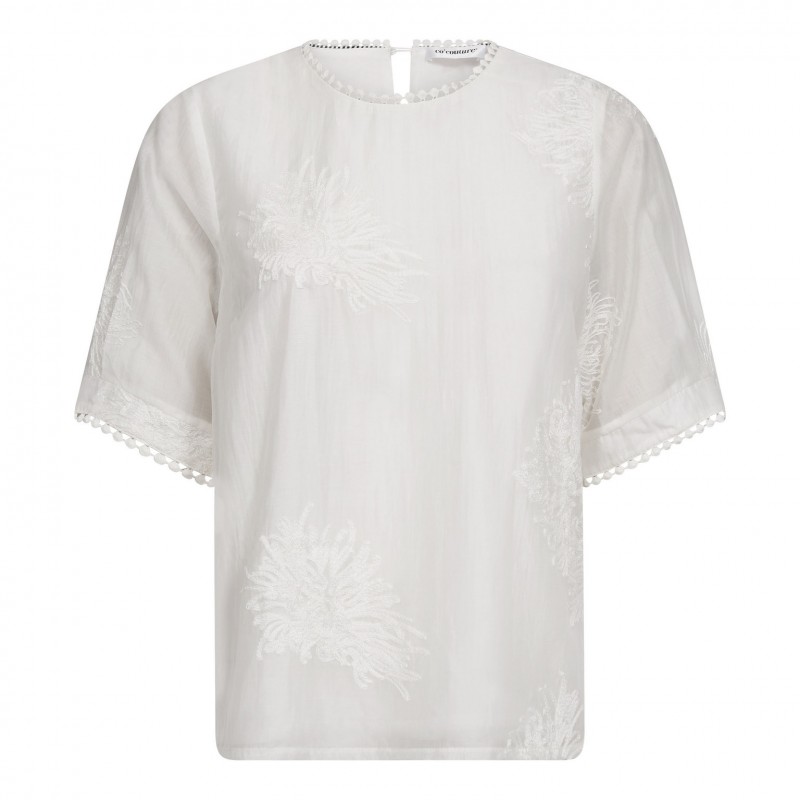 Co'couture NeaCC SS O-Blouse - Hvid bluse med broderi 45124 White