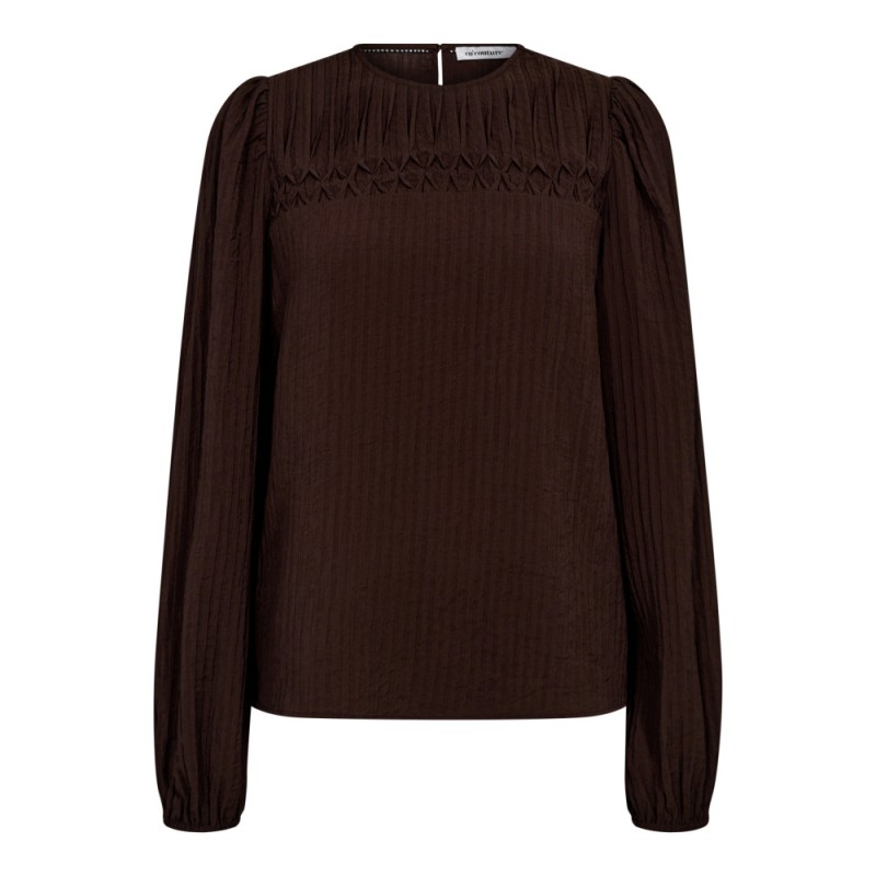 Co'couture ShinaCC Pintuck Blouse - Brun bluse 35921 Dark Brown