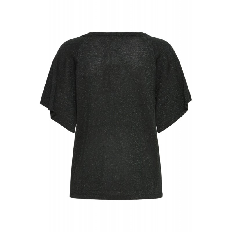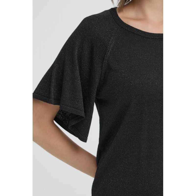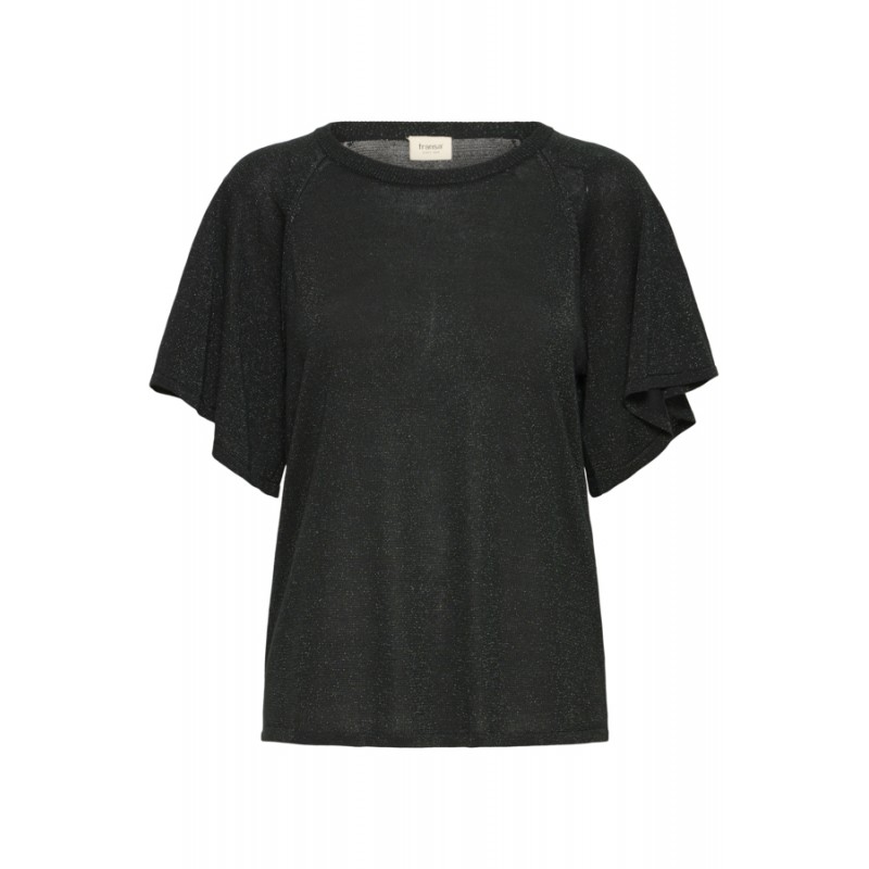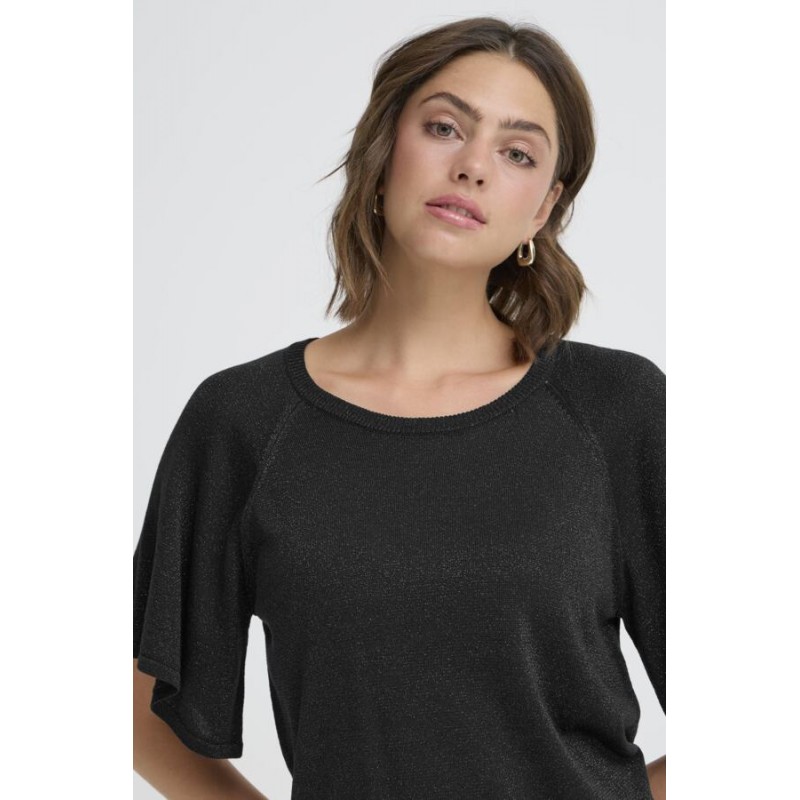 Sød og enkel bluse fra Fransa med korte ærmer. FRREGITZE blusen har rund hals og korte ærmer. Den er lavet i en tynd viskose strik kvalitet med en diskret lurex glimmer tråd i.