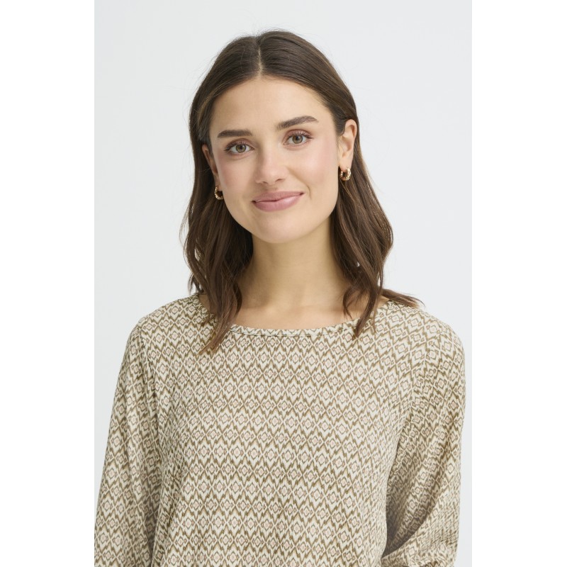 Fransa FRSLOANA TEE 1 - Grøn printet t-shirt 20617521 Ethnic Lines Smokey Olive fra Fransa