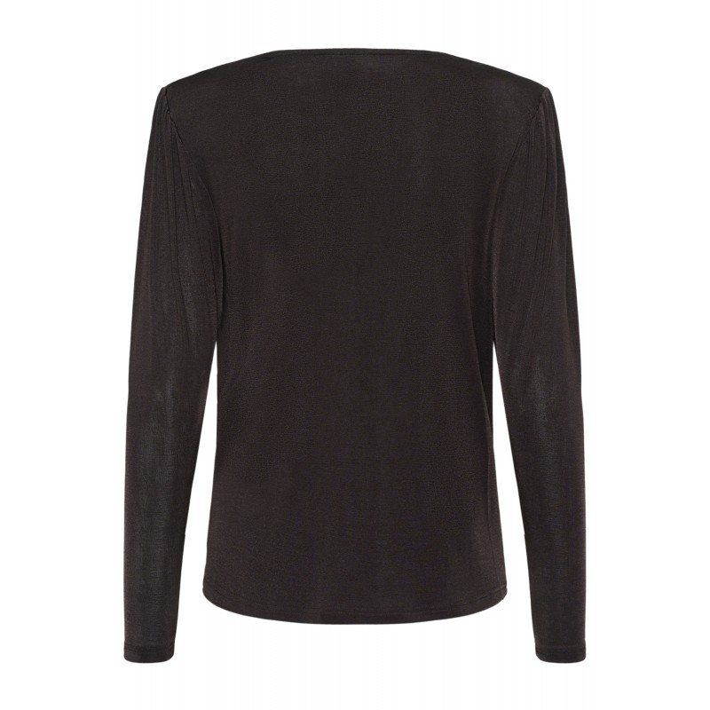 Kagina er en langærmet bluse med skulderpuder (udtagelige sidder fast med velcro) og vandfaldshals. Blusen har en let skinnende overflade og er en flot bluse til en festlig anledning.