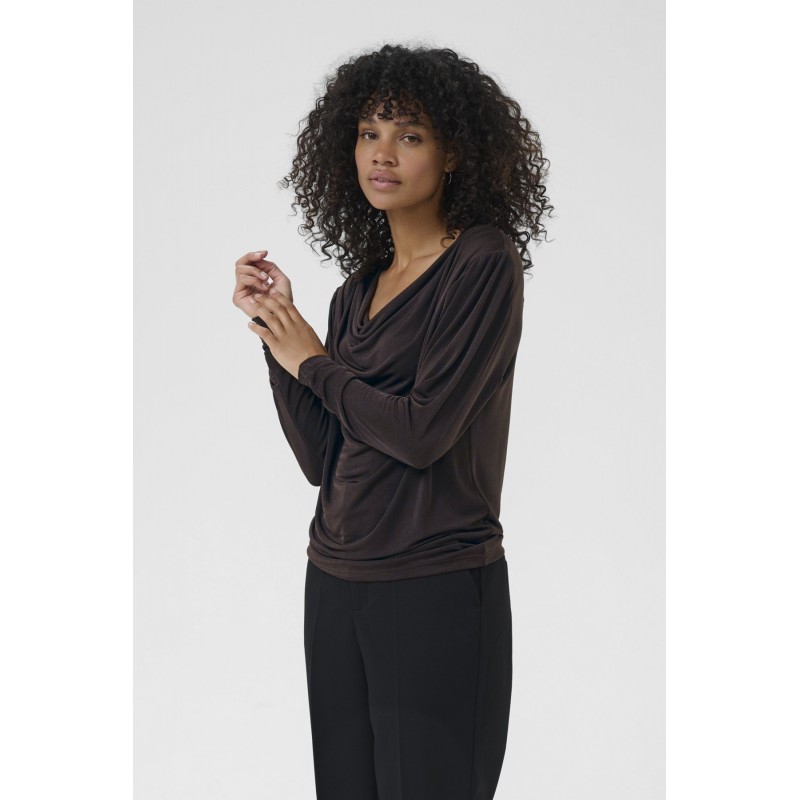 Kaffe KAgina Jersey Blouse - Brun bluse 10509321 Black Coffee fra Kaffe