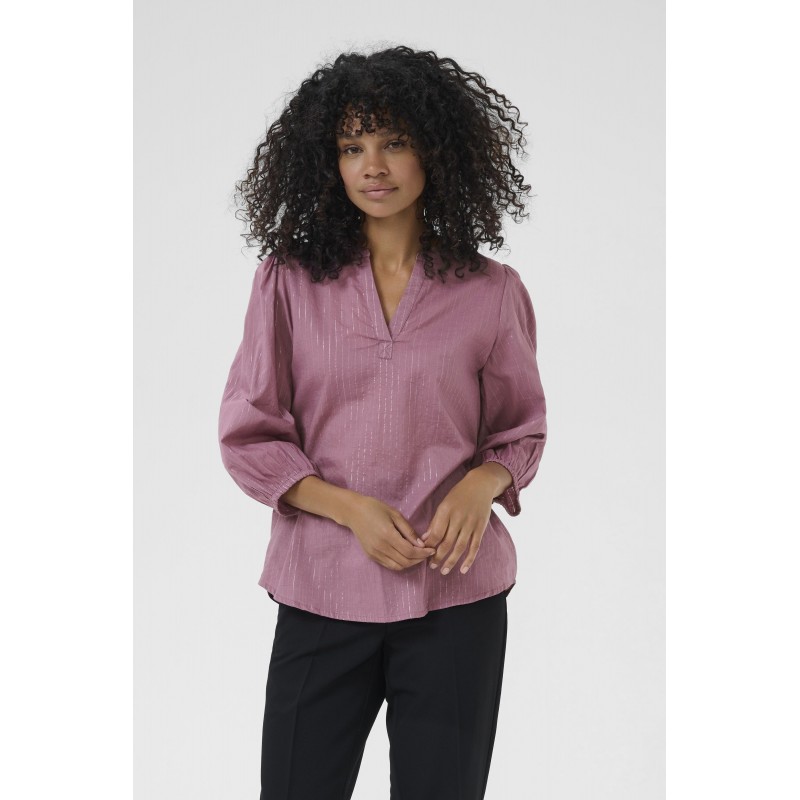 Kaffe KAluise Blouse - Rosa bluse med sølv stribe 10511016 Tulipwood