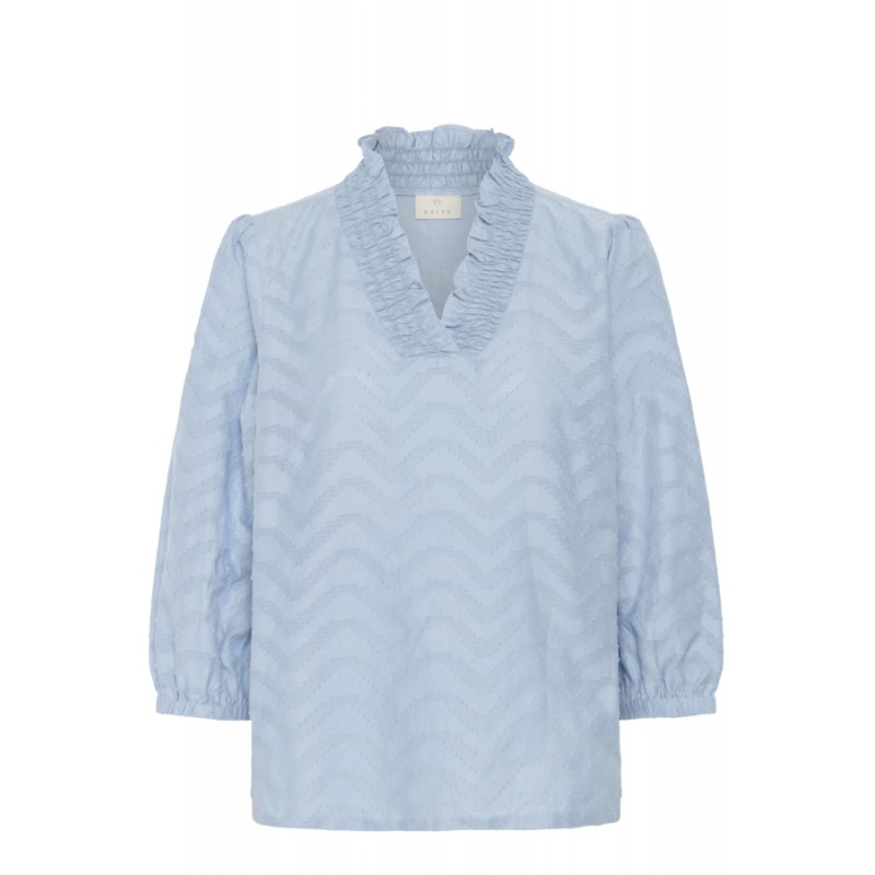 Sød bluse fra Kaffe i bomuld med v-hals og ærmer med smock elastik kant.
