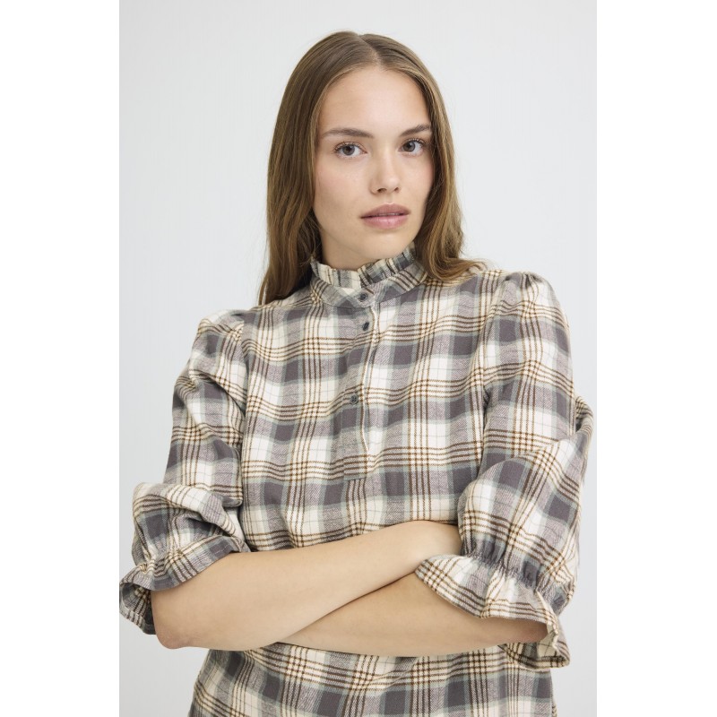 Pulz PZEVIE Blouse - Brun ternet bluse 50209225 NAVY GREEN BROWN CHECK fra Pulz