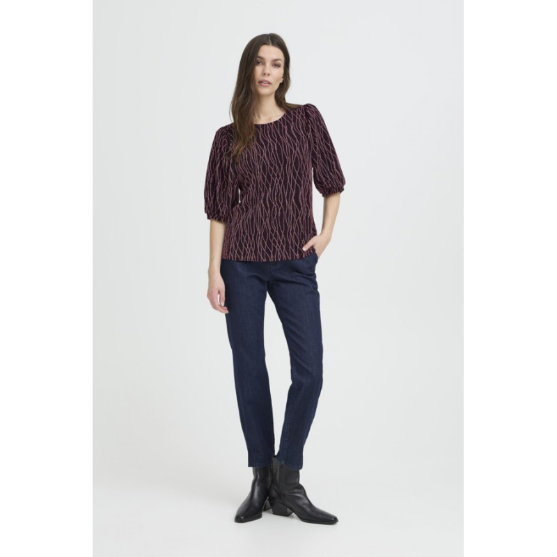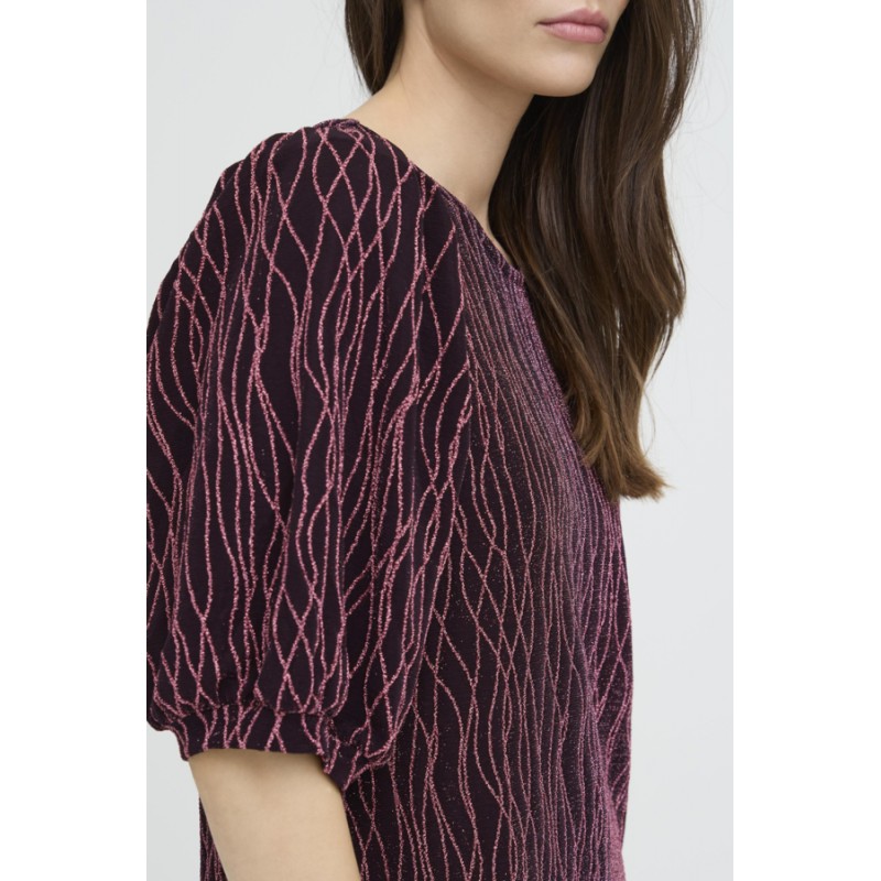 Pulz PZTHEA SS BLOUSE - Rosa lurex bluse 50210155 Dark Rose fra Pulz