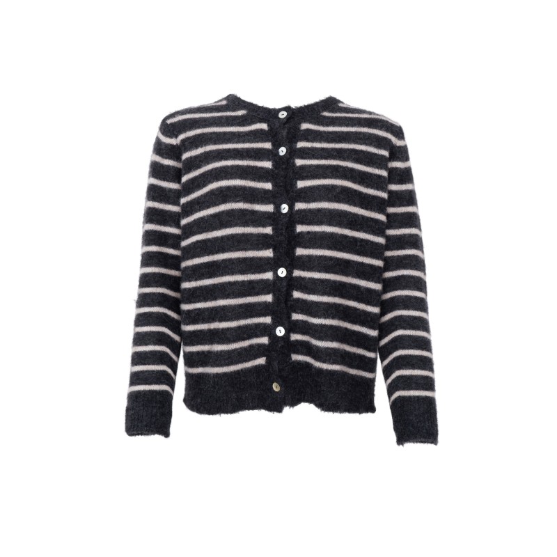 Black Colour BCDELL STRIPED KNIT CARDIGAN - Grå stribet cardigan 1197 Dk. Grey