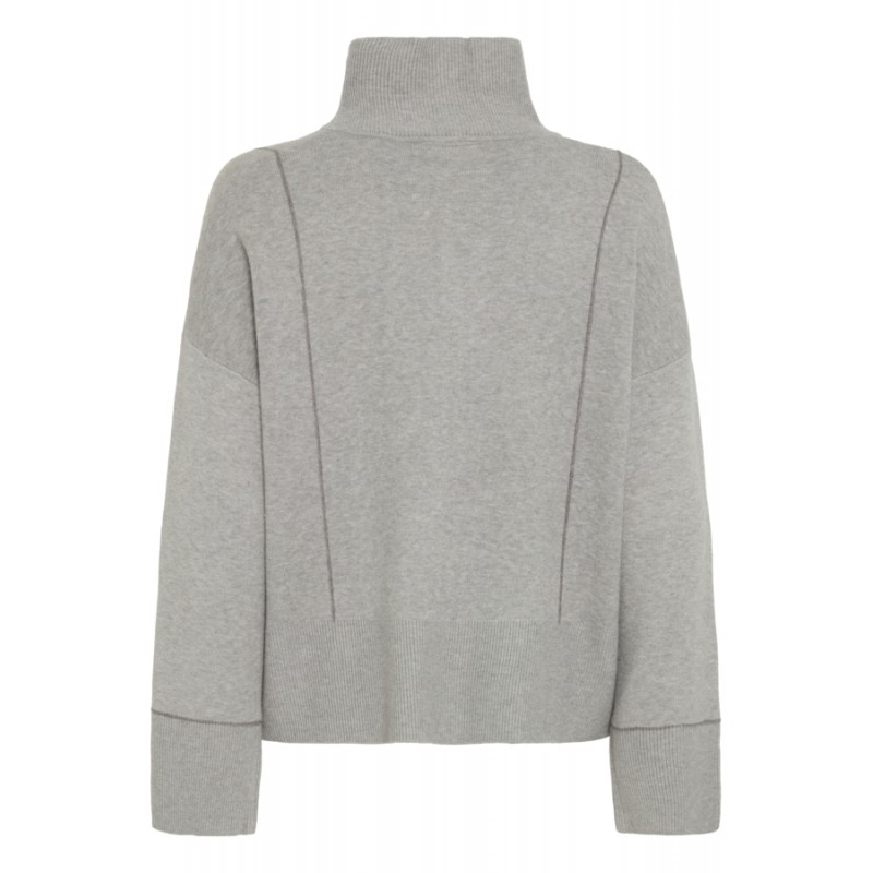 Blød og lækker strik cardigan fra ICHI i en flot lys grå melange farve. IHBALLIA Cardiganen har en høj krave, som kan lynes helt op i halsen. Den har lange ærmer og en dejlig afslappet pasform med slids i siderne.