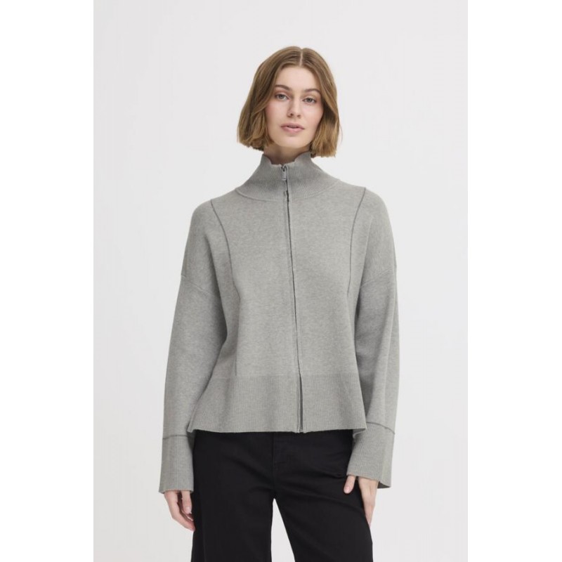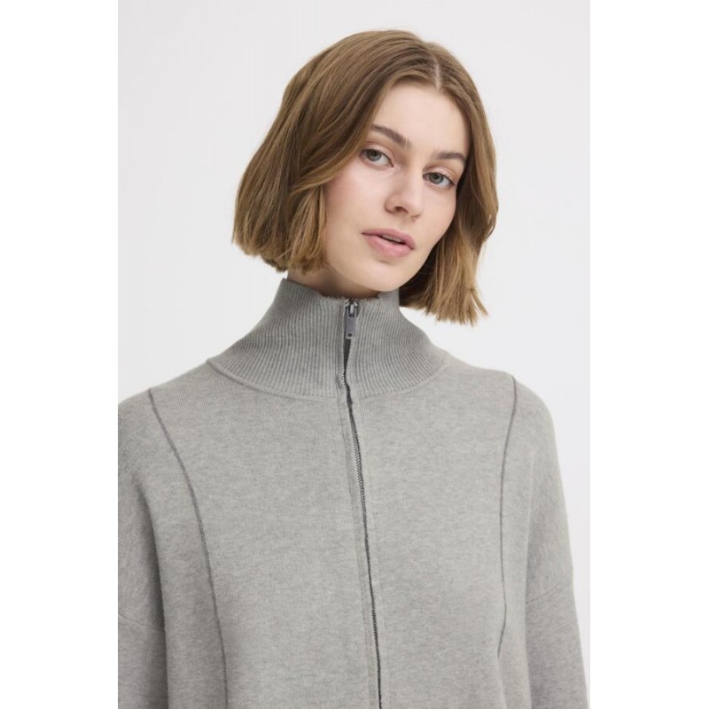 ICHI IHBALLIA CA2 - Grå cardigan med lynlås 20124239 Grey Melange