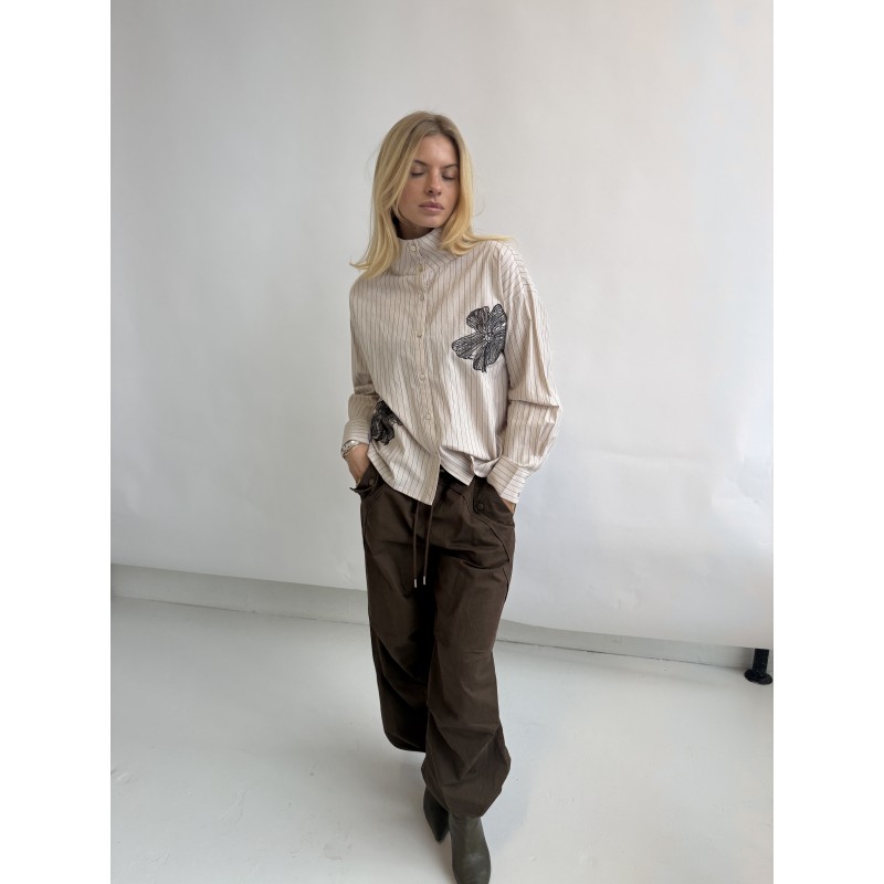 CONTINUE Jessie embroidery - Sand/stribet skjorte med sort broderie 15117 Sand Stripe fra Continue