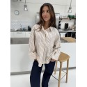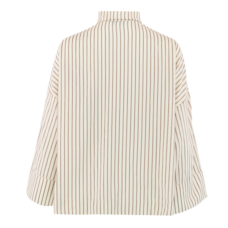 Lækker stribet skjorte bluse fra CONTINUE. Klara skjorten er en oversize model med en løs pasform. Den har stolpelukning foran og smarte guld knapper på ærmerne.