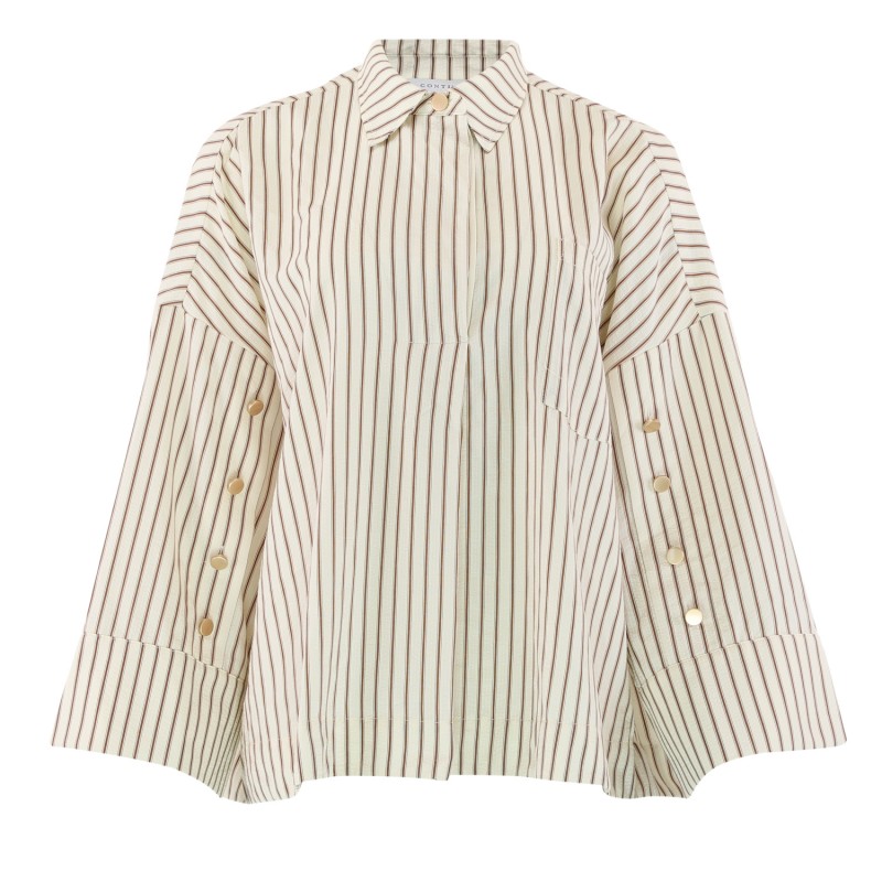 CONTINUE Klara L/S brown stripe - Brun stribet skjorte 14986 Brown stripe gold buttons fra Continue