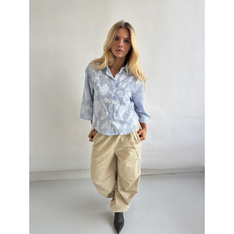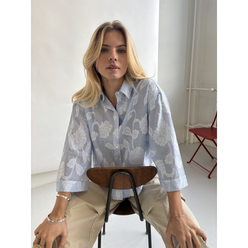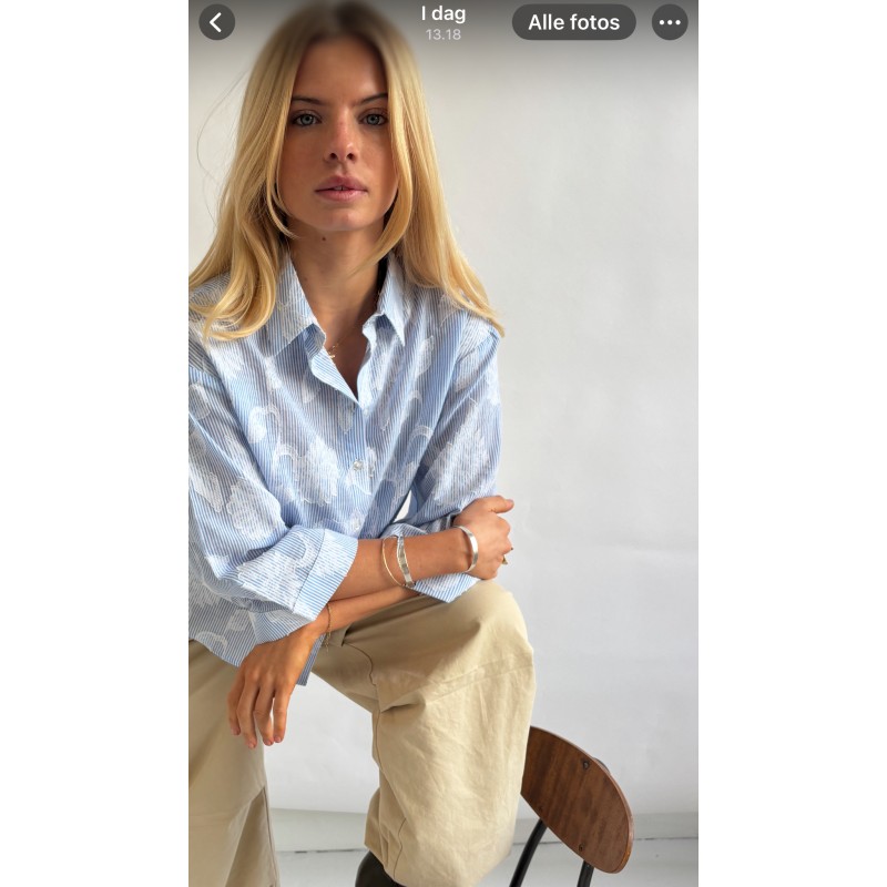 CONTINUE Mili Embrodery - Lyseblå stribet skjorte 15123 Blue Stripe fra Continue