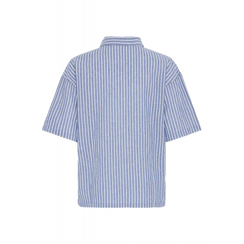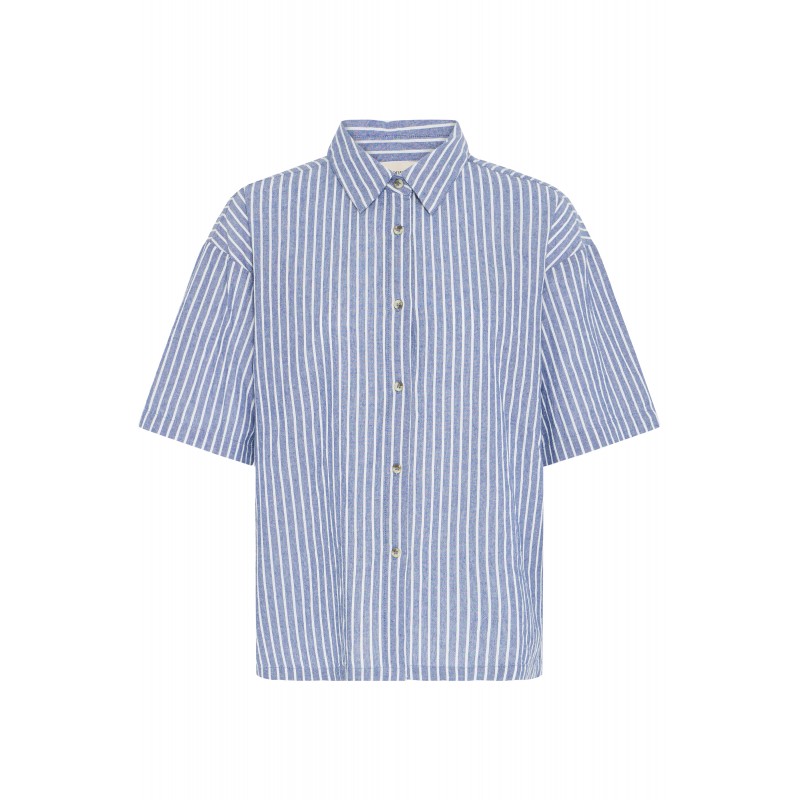 Stribet skjorte med med korte ærmer, almindelig krave og er gennemknappet. FRBONNIE er lige i pasformen og lavet i 100% bomuld.