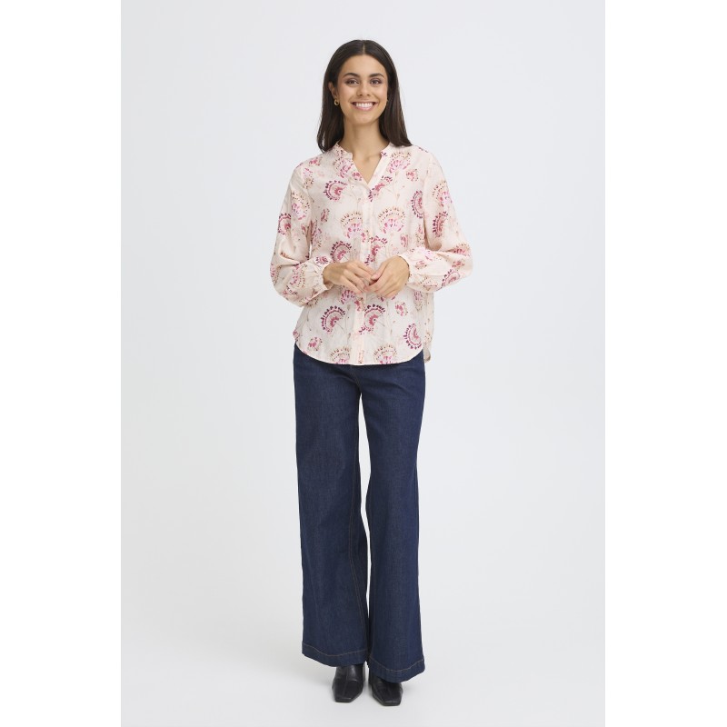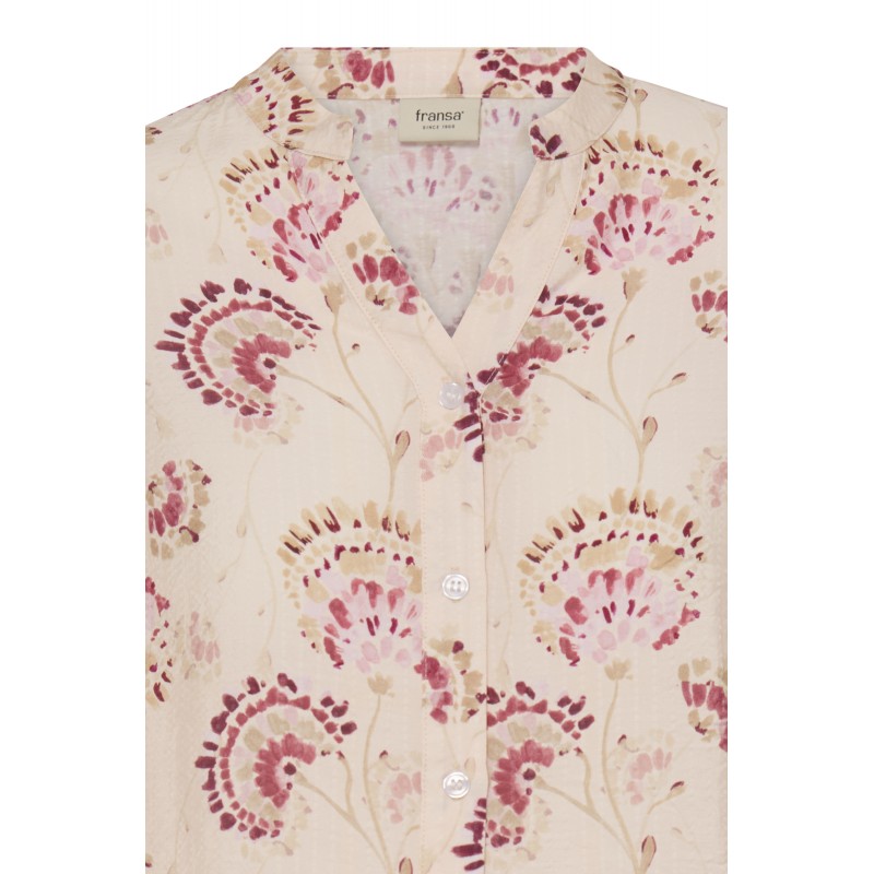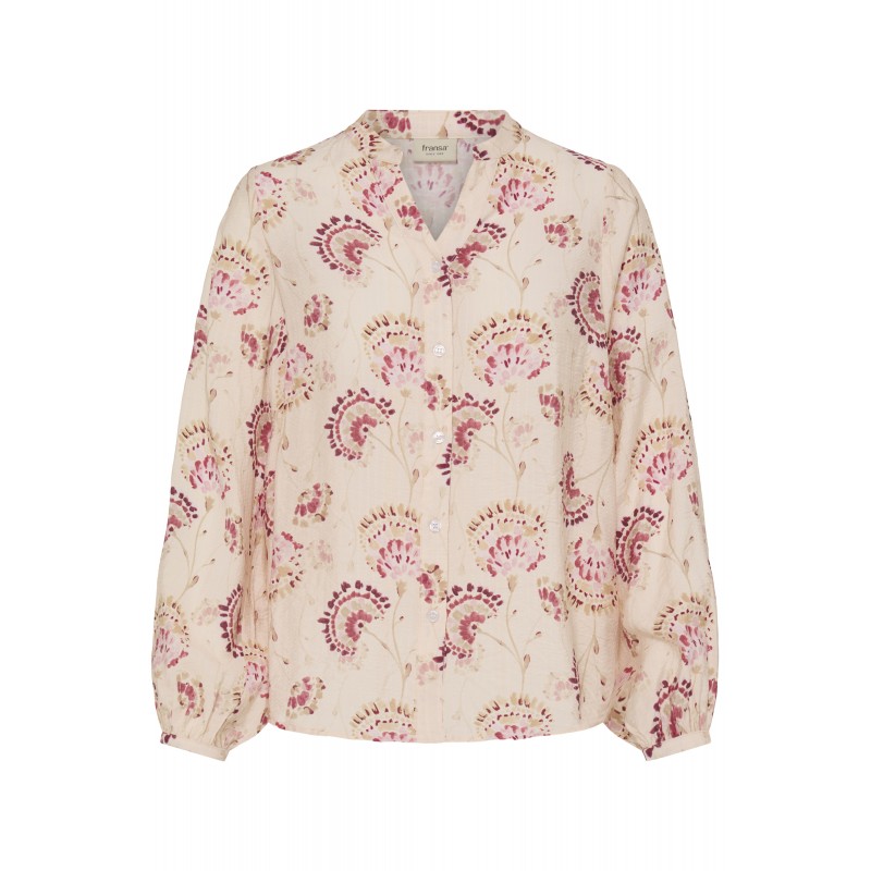 Sød let skjorte med blomsterprint, der har lange ærmer der slutter med en lille manchet med knap. FRKALIA skjorten har lige pasform, V-udskæring og gennemgående knaplukning til moderne udtryk.