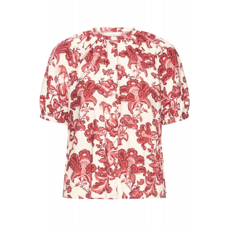 Sød kortærmet skjorte fra ICHI med det fineste røde blomster print. IHGILVIS skjorten har rund hals uden krave, korte ærmer og er gennem knappet.